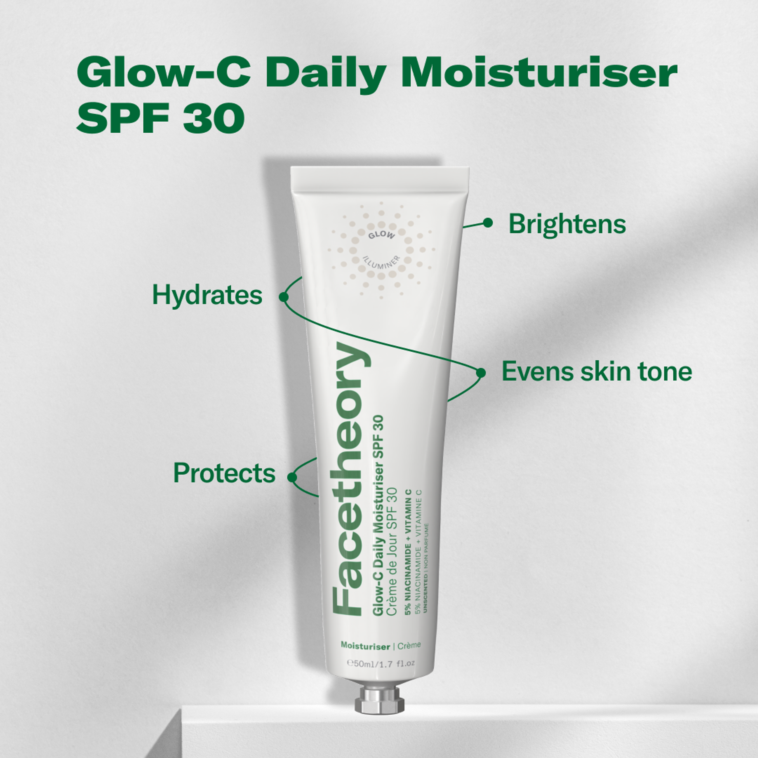Formulated with stabilised vitamin C and niacinamide, it helps visibly even tone and boost radiance while supporting a stronger, clearer barrier over time. Broad-spectrum SPF 30 protects against daily UV damage.